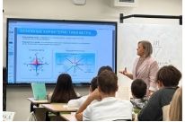 В ходе практической части ученики надували воздушные шары и пробовали объяснить изменения давления, плотности и объема воздуха внутри них. После этого ребята работали в парах, измеряя скорость полета шариков по классу.