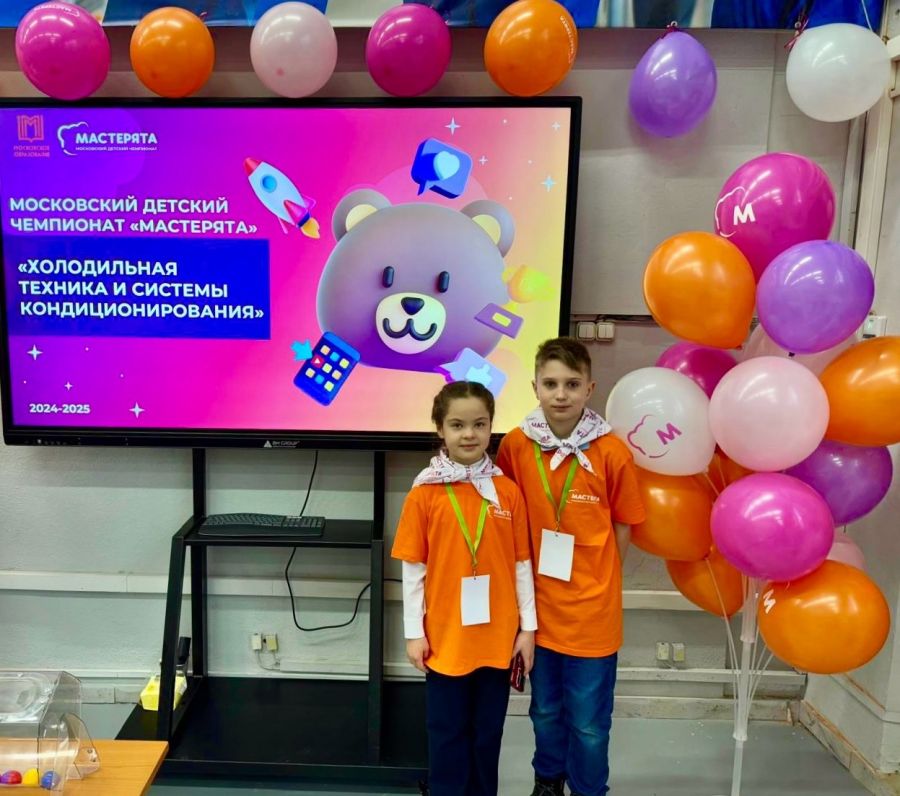 Ученики 4 «Ж» класса Ангелина и Дмитрий стали победителями Московского детского чемпионата «Мастерята» в компетенции «Холодильная техника и системы кондиционирования» (3-4 класс).