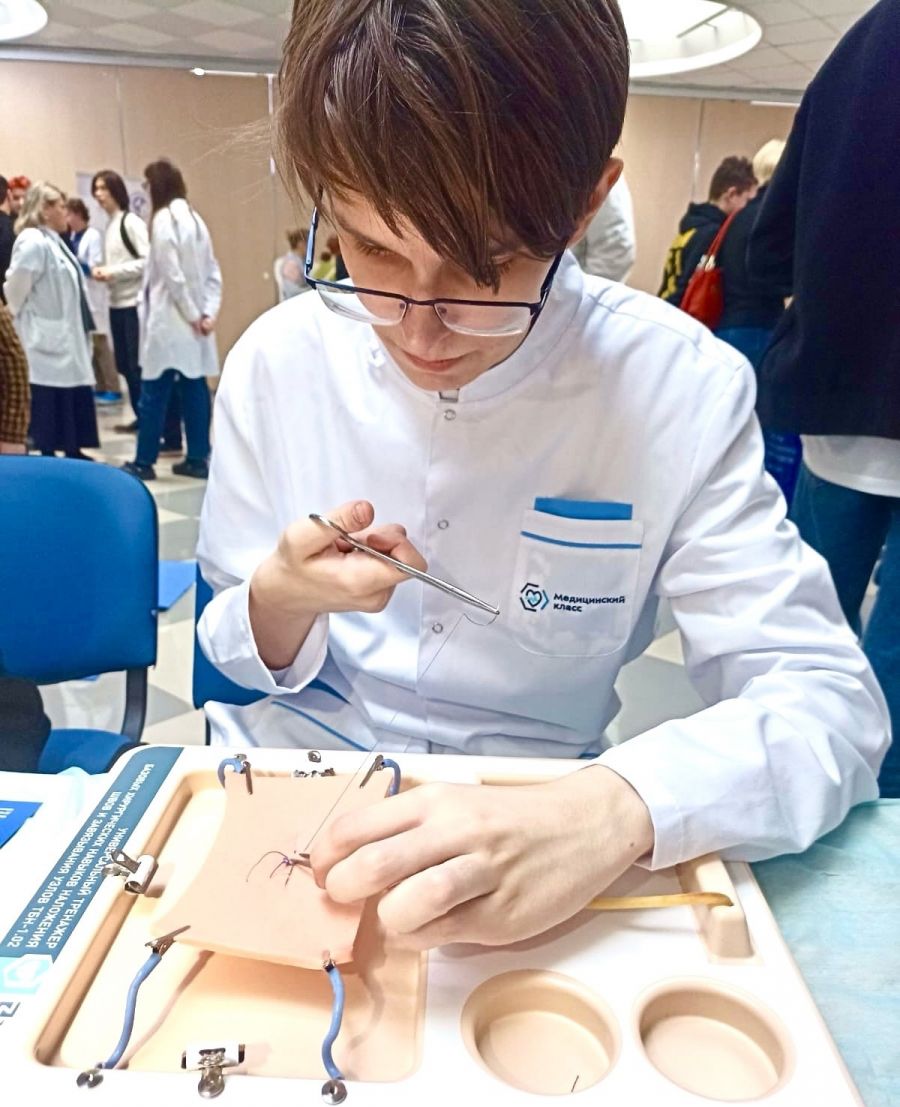 «Мы попробовали себя в микрохирургии, изучили инструменты для лапароскопии, а кульминацией стало проведение операции в виртуальной реальности», — рассказала ученица 10 медицинского класса Вероника.