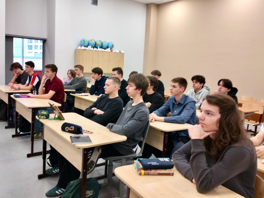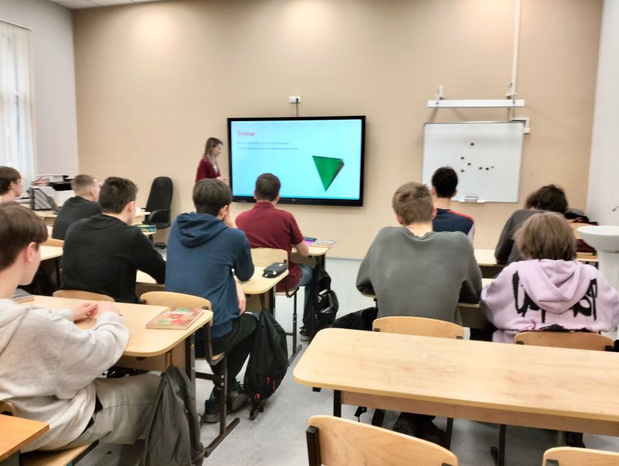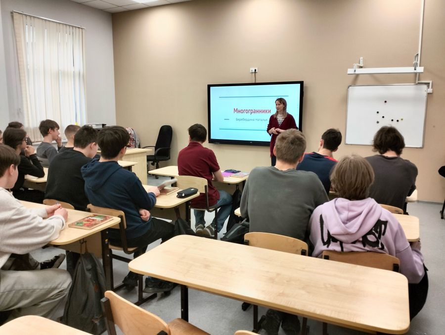 Ученики инженерных 9 «М» и 10 «И» классов прослушали лекцию по теме «Многогранники» от студентки 5 курса Высшей школы экономики Натальи.