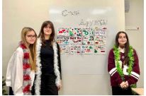 В рамках задания «Новогоднее приветствие мира» ребята сделали стену дружбы, где написали поздравление с Новым Годом на 12 языках: