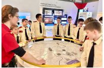 В третьем разделе «Город» семиклассники изучили 13-метровый макет Москвы, который имеет не только верхний уровень со зданиями, набережными и парками, но и нижний — где скрываются подземные коммуникации, коллекторы и тоннели.